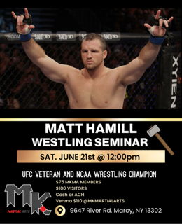 MK Martial Arts is excited to announce that UFC veteran and NCAA wrestling champion Matt Hammill will be coming into our school to do a wrestling seminar with the crew!